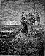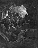 In 1853 Doré was asked to illustrate the works of Lord Byron.[4] This commission was followed by additional work for British publishers, including a new illustrated Bible. In 1856 he produced 12 folio-size illustrations of The Legend of The Wandering Jew, which propagated longstanding antisemitic views of the time,[5] for a short poem which Pierre-Jean de Béranger had derived from a novel of Eugène Sue of 1845.[6][7][8]