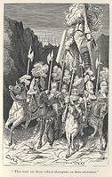 Edyrn with His Lady and Dwarf Journey to Arthur's Court, in Idylls of the King by Lord Alfred Tennyson, illustrated by Gustave Doré