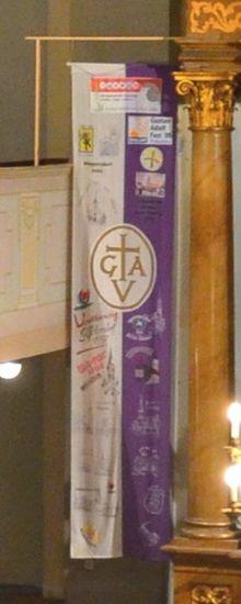 Under the leadership of Hans Gerber (1934–1944), the first lawyer, and among the only non presidents with a non theologican background, the Gustav Adolf Werk was comparable close to the regime and the Deutsche Christen. de:Gerhard Heinzelmann replaced him 1944, he was a more liberal member of the neohumanist de: Spirituskreis and, similar to Ernst Wagner, a founding member of the CDU, the German Christian Democrats. The first congregation of the GAW after WWII took place in Fulda, the East West conflict lead to a separation in Kassel 1963 and a Leipzig, working along the lines of "Kassel got the money, Leipzig the tradition".[3] The GAW tried to manage its cohesion despite the fact of the separation of Germany. However, with Johannes Hoffmann as first "Eastern" president, the political divide forced to set up two organizations starting from 1971. 1992 the GAW was the first major entity of the EKD, that moved to the East, back its former headquarter in Leipzig and integrated the organization. 1994, with the 400 anniversary of King Gustav, the Swedish royal family visited the GAW in Leipzig.[4] The perception of lack of political correctness of the name resulted in some internal criticism, the organization uses GAW as its brand nowadays. The current approach is to gain interest for Protestant diaspora churches worldwide, the GAW as well interacts with immigrants from such regions, as possible messengers in their home countries.