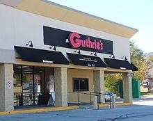 The original Guthrie's was opened in Haleyville, Alabama, in 1965 by Hal Guthrie.[1] The restaurant originally served a full menu of Southern food, but in 1978 it was changed to focus primarily on chicken fingers.[1] This switch resulted in Guthrie's becoming the first restaurant to have a menu largely centered on chicken fingers.[2] By 1982, a second location would open in Auburn and a third in Athens, Georgia by 1984.[1] By 1997, eight locations were open and all were under the ownership of the Guthrie family.[1]