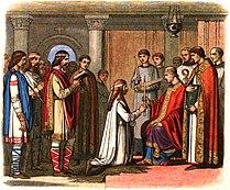 "Then the raiding army granted him [Alfred] hostages and great oaths that they would leave his kingdom and also promised him that their king [Guthrum] would receive baptism; and they fulfilled it. And three weeks later the king Guthrum came to him, one of thirty of the most honourable men who were in the raiding army, at Aller – and that is near Athelney – and the king received him at baptism; and his chrism loosing was at Wedmore."