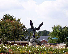 One of Borglum's more unusual pieces is the Aviator completed in 1919 as a memorial for James Rogers McConnell, who was killed in World War I while flying for the Lafayette Escadrille. It is located on the grounds of the University of Virginia in Charlottesville, Virginia.[38]