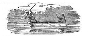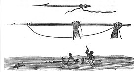 One of the members of the crew, the skilled botanist and drawer Sydney Parkinson set down in his journal a sketch of the local people. He described them as diminutive and small boned, agile, their skin painted with red and white ochre, with wood-sooty skin and generally given to shaving their hair off. They practiced nose piercing. Women wore a feather headdress. They used wood from the ficus riduola as a rasp to sharpen their spears, which were tipped with bone. Their languages was quite mellifluous, with clear enunciation.[16]