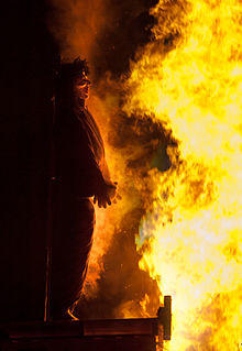 1. ^ Nationally, effigies of Fawkes were subsequently joined by those of contemporary hate figures such as the pope, the sultan of Turkey, the tsar of Russia and the Irish leader Charles Stewart Parnell. In 1899 an effigy of the South African Republic leader Paul Kruger was burnt at Ticehurst, and during the 20th century effigies of militant suffragists, Kaiser Wilhelm II, Adolf Hitler, Margaret Thatcher and John Major were similarly burnt.[11][12][13]
