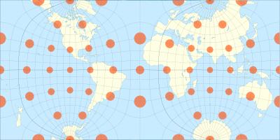 - The part where the exaggeration of scale amounts to double that at the centre of each square is only 9% of the area of the sphere, against 13% for the Mercator and 50% for the stereographic[3]