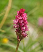 They can be found in damp meadows, fens and marshes, and on chalk or limestone, often in alpine regions of Europe and Asia from Portugal to Kamchatka, including China, Japan, Mongolia, Siberia, the Himalayas, Iran, Ukraine, Germany, Scandinavia, Great Britain, etc.[2][3][4] The fragrant orchid (Gymnadenia conopsea) has been introduced into the USA and is reportedly naturalized in Connecticut.[5]