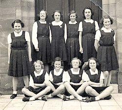 The introduction of the gymslip as female athletic wear is credited to Mary Tait, a student of Martina Bergman-Österberg, a pioneer of women's physical education in Britain.[1] Gymslips were worn by gymnasts and track and field athletes from the 1880s to the 1920s, as they were more mobile than traditional female attire, but still modest enough to keep the underwear hidden during sporting activity. Even in this modest attire, gymslips as athletic wear were still worn strictly out of public view.[2][3]