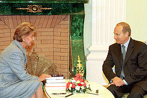 The bulk of Carrère d'Encausse's work has been on Russia and the Soviet Union. She has had over two dozen books published in French, many of which have been translated into English. Her 1978 work L'empire éclaté: La révolte des nations en U.R.S.S (English version, Decline of an Empire: The Soviet Socialist Republics in Revolt) predicted that the Soviet Union was destined to break up along the lines of its 15 constituent republics. In commenting on current Russian affairs, Carrère d'Encausse has warned against applying Western yardsticks to Russian democracy and has said that she regrets the "excessive diabolization" of the regime of Vladimir Putin.[2]