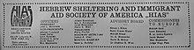 - ^ Up to 2013, HIAS's web site gave no founding date but stated that the organization was operating in 1891: "In 1891, Jewish residents of Moscow, St. Petersburg and Kyiv were expelled and many came to America. Ellis Island was the place of entry for these new arrivals. The Hebrew Immigrant Aid Society was there to facilitate legal entry, reception and immediate care for them."[8] The site now gives the foundation date of 1881.[6]