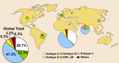 In Africa, subtype C of HIV-1 is very common, whereas it is rare in America or Europe. People with subtype C progress to AIDS faster than those with subtype A, the predominant subtype in America and Europe (see HIV disease progression rates#HIV subtype variation and effect on progression rates).