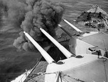 In February 1941, Canberra was involved in efforts to locate the German pocket battleship Admiral Scheer.[13] In early March, Canberra encountered two merchant ships; a tanker supplying a possible merchant raider, which split up and fled when ordered to stop.[14] Canberra pursued the suspected raider, and fired on her from maximum range to avoid a retaliatory attack, while her Walrus amphibian attempted to stop the tanker by dropping several bombs.[15] Both ships (the raider supply ship Coburg and the captured Norwegian tanker Ketty Brøvig) had commenced scuttling after the first attack from their pursuit, but the Australians continued attacking: the Walrus used all her bombs, while Canberra fired 215 shells, many of them misses.[15] A post-action analysis found that if Canberra had closed before firing, the same quantity of damage could have been achieved for less ammunition, and one or both ships might have been captured.[16][17]