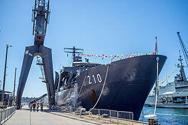 The Garden Island facility houses the Captain Cook Graving Dock which was, at the time of construction during World War II, the largest graving dock in the Southern Hemisphere.[3] The dock was constructed between 1940 and 1945, by filling in the area between Garden Island and Potts Point. The dock and associated dockyard are operated under lease by Thales Australia. The northern tip of Garden Island is as of 2008 open to the public, accessible only by ferry. The area features the Navy Heritage Centre, opened in 2004, and graffiti dating to the First Fleet in 1788.