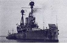 She was modified at Chatham Dockyard for use as a target ship between 6 December 1920 and 8 April 1921.[Note 1] The ship was rewired for radio control and stripped; the 12-inch turrets remained aboard, but all of her guns and their equipment were removed, as were her torpedo equipment, flying deck, sea cabins, main derrick and boat equipment, lower conning tower, masts and yards, most of her crew amenities, and other unnecessary equipment. Unnecessary hatches, coamings, scuttles, and lifts were removed and plated over, and she was ballasted differently than she had been as a battleship. It was not intended to sink her, so she was assigned a crew of 153 to maintain and operate her when she was not under fire.[6]