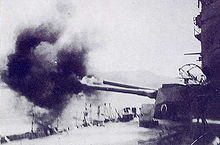 The ship also participated in the main attack on the Dardanelles forts on 18 March. This time, a 6-inch (152 mm) howitzer battery opened fire on Agamemnon and hit her 12 times in 25 minutes; five of the howitzer shells hit her armour and did no damage, but the seven that hit outside her armour protection did considerable structural damage and temporarily put one of her 12-inch (305 mm) guns out of action.[4]