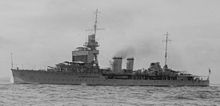 In the interbellum, in 1924, she was part of the First Cruiser Squadron, Atlantic.[2] During 1924, she was attached to a task force with HMS Hood, Repulse, Delhi, Danae (which would later replace Dragon in the Polish Navy) and Dauntless for a variety of tasks around the world. Dragon was stationed in Zanzibar, Ceylon, New Zealand, Fiji, Canada, and Jamaica, and took part in visits to the United States, Dutch Antilles, and Australia.