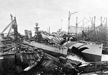 On 22 January 1930, the refit was completed and Dragon entered commission once more, and after undergoing trials at Chatham acted as tender to Pembroke.[2] She was commissioned a number of times during the 1930s on 30 May 1933 Noël Coward the well-known playwright, composer, director, actor and singer who had arrived at Bermuda on 28 May on SS Roma found his way on board HMS Dragon commanded by Captain Philip Louis Vian whose first words were on his discovery were "What the hell are you doing on board this ship?" but after having some gin in the Captain’s cabin Coward was allowed to stay for a cruise on the ship ending on the Pacific side of the Panama canal,[7] HMS Dragon headed out into the Pacific for the China Station. In 1935 Dragon was attached again to the America and West Indies station. In 1934, she was involved in a collision with a ship in the harbour of Montreal, Quebec, Canada, which resulted in an Admiralty action against her captain at the time, Frederic Wake-Walker. The Canadian courts found him liable for the collision. That finding of liability was upheld on appeal by the Judicial Committee of the Privy Council, at that time the court of last resort for the British Empire and Commonwealth. In late October 1936 HMS Dragon attempted several times to tow the large Spanish cruise liner Cristobal Colon which had struck a reef north of Bermuda, these recovery attempts were not successful and the remains of Cristobal Colon still lie at the reef.[8] She recommissioned with a reserve crew 16 July 1937, serving as a tender to HMS Cardiff,[2] and in 1938-9 she formed part of the Reserve Fleet based at The Nore.