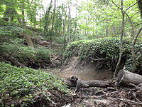 The holotype of Hadrosaurus was found in marine sediments, which suggests the skeleton was transported by a river and then deposited in the Cretaceous sea. The Hadrosaurus remains all persist to the Woodbury Formation.[1] Through the radiometric dating of bivalve shells known from the formation, the sedimentary rocks where the holotype specimen of Hadrosaurus was found have been dated from 80.5 million to 78.5 million years ago.[9]