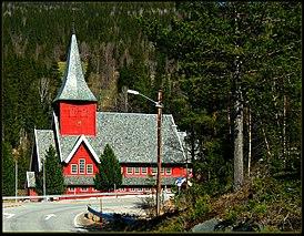 Hol Church (Hol kyrkje) is located in Hagafoss. The church was constructed of wood during 1924 and has 400 seats. The architect was Ole Eriksen Stein (1867-1950).[2] [3] [4]