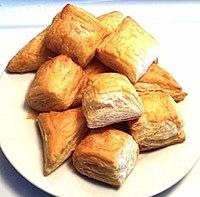 - Pâté Haïtien (Haitian patty) - A very popular savory snack made with a delicate puff pastry stuffed with ground beef, salted cod (bacalao), smoked herring, chicken, and ground turkey topped with spices for a bold and spicy unique flavor.[24]