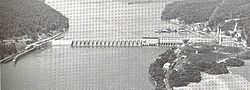 Hales Bar Dam was a hydroelectric dam once located on the Tennessee River in Marion County, Tennessee, United States. The Chattanooga and Tennessee River Power Company began building the dam on October 17, 1905 and completed it on November 11t, 1913, making Hales Bar one of the first major multipurpose dams and one of the first major dams to be built across a navigable channel in the United States. It began operation on November 13, 1913.
