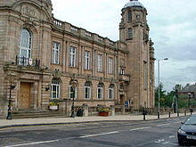 Other historic buildings in the area include Hamilton Old Parish Church, a Georgian era building completed in 1734 and the only church to have been built by William Adam.[4] The graveyard of the old parish church contains some Covenanter remains. The former Edwardian Town Hall now houses the library and concert hall. The Townhouse complex underwent a sympathetic modernization in 2002 and opened to the public in summer 2004. The ruins of Cadzow Castle also lie in Chatelherault Country Park, 2 miles (3 km) from the town centre.[4]