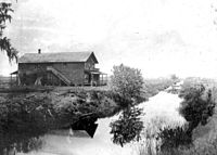The key to Disston's Florida plans was a massive dredging effort to drain the Kissimmee River floodplain that flows into Lake Okeechobee, to remove the surface water in the Everglades and the surrounding lands regardless of season.[10] The canals were engineered to guide the overflow of Lake Okeechobee into the St. Lucie River and then into the Atlantic Ocean in the east; the Caloosahatchee River overflow was directed to the Gulf of Mexico in the west, and eventually canals were to be constructed south through the Everglades.[37] Disston was advised to begin with a large canal connecting Lake Okeechobee with the St. Lucie but the prohibitive costs forced him to begin with smaller dredging operations to straighten the Kissimmee River and to connect Lake Okeechobee with the Caloosahatchee.[38] Dredging commenced around Lake Okeechobee during the winter of 1881–1882.[39] In June 1883, a report concluded that the Kissimmee valley was indeed drying up as Disston planned, and another report a year later reported further drainage with nearly 3,000,000 acres (12,000 km2) of reclaimed land credited to Disston.[40]