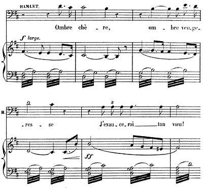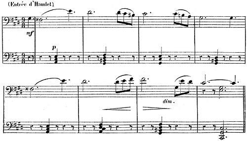 Hamlet's Theme from act 1. (Piano-vocal score, p. 24) |