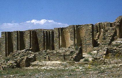 In Qalaat Beni Hammad, the minaret, 82 feet (25 m) in height, is the only remaining part of the ruined Great Mosque; the structure bears some resemblance to Seville's Giralda.[1] Architecture in Qalaat Beni Hammad featured adornments of "porcelain mosaics of many-colored faience, sculpted panels and plaster, enameled terra-cotta stalactites; building and pottery ornamentation consisted of geometric designs and stylized floral motifs."[1] Hammadid emirs constructed five palaces, most of which are now destroyed. The keep of the Palace of the Fanal (Qasr al-Manar) does survive.[1]