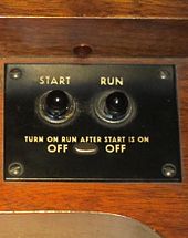 Before a Hammond organ can produce sound, the motor that drives the tonewheels must come up to speed. On most models, starting a Hammond organ involves two switches. The "Start" switch turns a dedicated starter motor, which must run for about 12 seconds. Then, the "Run" switch is turned on for about four seconds. The "Start" switch is then released, whereupon the organ is ready to generate sound.[5] The H-100 and E-series consoles and L-100 and T-100 spinet organs, however, had a self-starting motor that required only a single "On" switch.[27] A pitch bend effect can be created on the Hammond organ by turning the "Run" switch off and on again. This briefly cuts power to the generators, causing them to run at a slower pace and generate a lower pitch for a short time. Hammond's New B3 contains similar switches to emulate this effect, though it is a digital instrument.[19][28]