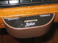 The Leslie was originally designed to mimic the complex tones and constantly shifting sources of sound emanating from a large group of ranks in a pipe organ. The effect varies depending on the speed of the rotors, which can be toggled between fast (tremolo) and slow (chorale) using a console half-moon or pedal switch, with the most distinctive effect occurring as the speaker rotation speed changes. The most popular Leslies were the 122, which accepted a balanced signal suitable for console organs, and the 147, which accepted an unbalanced signal and could be used for spinet organs with a suitable adapter.[86] The Pro-Line series of Leslies which were made to be portable for gigging bands using solid-state amps were popular during the 1970s.[87]