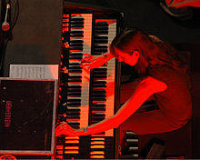 The Hammond organ was perceived as outdated by the late 1970s, particularly in the UK, where it was often used to perform pop songs in social clubs.[139] Punk and new wave bands tended to prefer second-hand combo organs from the 1960s, or use no keyboards at all.[140] Other groups started taking advantage of cheaper and more portable synthesizers that were starting to come onto the market.[141] The Stranglers' Dave Greenfield was an exception to this, and used a Hammond onstage during the band's early career. Andy Thompson, better known for being an aficionado of the Mellotron, stated, "the Hammond never really went away. There are a lot of studios that have had a B-3 or C-3 sitting away in there since the 70s."[142] The instrument underwent a brief renaissance in the 1980s with the mod revival movement. Taylor played the Hammond through the 1980s, first with the Prisoners and later with the James Taylor Quartet.[143] The sound of the Hammond has appeared in hip-hop music, albeit mostly via samples. A significant use is the Beastie Boys' 1992 single "So What'cha Want", which features a Hammond mixed into the foreground (the instrument was recorded live rather than being sampled).[144]
