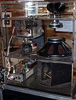 The Hammond organ's technology derives from the Telharmonium, an instrument created in 1897 by Thaddeus Cahill.[29] The telharmonium used revolving electric alternators which generated tones that could be transmitted over wires. The instrument was bulky enough to require several railway cars for its transportation, because the alternators had to be large enough to generate high voltage for a loud enough signal. The Hammond organ solved this problem by using an amplifier.[30]