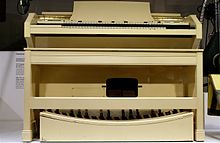 The Hammond organ is an electric organ invented by Laurens Hammond and John M. Hanert[6] and first manufactured in 1935.[7] Various models have been produced, most of which use sliding drawbars to vary sounds. Until 1975, Hammond organs generated sound by creating an electric current from rotating a metal tonewheel near an electromagnetic pickup, and then strengthening the signal with an amplifier to drive a speaker cabinet. The organ is commonly used with the Leslie speaker.
