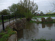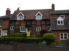 There are some well preserved 17th century and timber framed houses, some of which are listed.[7] Outside the village, to the south-east, is the 15th-century packhorse bridge over the River Blythe and on the former route to Kenilworth.[1] Only 5 ft (1.5 m). wide between the low parapets, consisting of five bays with ancient stone piers having pointed cut-water faces on the west side against the flow of the stream—and square projections on the east. The three northern arches are segmental-pointed, the southern two have been rebuilt with brick arches. East of the bridge is a ford.[7]