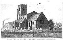 Hampton is mentioned in Domesday Book (1086), when it was held by Geoffrey de Wirce. "In Coleshill Hundred Hantone. 10 hides. Land for 22 ploughs. In lordship 2; 2 male and 2 female slaves. 50 villagers with a priest and 16 smallholders have 13 ploughs. A mill at 40d; meadow, 10 acres; woodland 3 leagues long and 3 wide. The value was and is 100s." All of Geffrey's lands were held freely by Leofwin. Geffrey's wife was called Aelfeva and her English name suggests that Geffrey may have acquired his Warwickshire lands through her, by inheritance rather than by confiscation; she may have been Leofwin's heiress.[4] A priest was recorded, implying that a church existed.