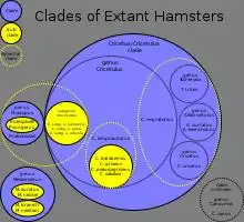 - ^ Neumann, K; Michaux, J; Lebedev, V; Yigit, N; Colak, E; Ivanova, N; Poltoraus, A; Surov, A; Markov, G (2006). "Molecular phylogeny of the Cricetinae subfamily based on the mitochondrial cytochrome b and 12S rRNA genes and the nuclear vWF gene" (PDF). Molecular Phylogenetics & Evolution. 39 (1): 135–48. doi:10.1016/j.ympev.2006.01.010. PMID 16483801.