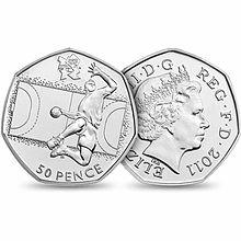 The most recent commemorative coin featuring handball is the British 50 pence coin, part of the series of coins commemorating the London 2012 Olympic Games.[25]