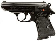 The Walther PP (Polizeipistole, or police pistol) series pistols were introduced in 1929 and are among the world's first successful double action, blowback-operated semi-automatic pistols, developed by the German arms manufacturer Carl Walther GmbH Sportwaffen.[40][41] They feature exposed hammers, a traditional double-action trigger mechanism,[42] a single-stack 8-round magazine (for .32 ACP version), and a fixed barrel that also acts as the guide rod for the recoil spring. The Walther PP and smaller PPK models were both popular with European police and civilians for being reliable and concealable. They would remain the standard issue police pistol for much of Europe well into the 1970s and 80s. During World War II, they were issued to the German military, including the Luftwaffe.[41]