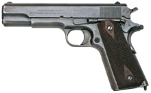 The Colt Model 1911 is a 7+1-round, single-action, semi-automatic, magazine-fed, recoil-operated pistol chambered for the .45 ACP cartridge.[35] It served as the standard-issue sidearm for the United States Armed Forces from 1911 to 1986, however, due to its popularity, it has not been completely phased out. Designed by John Browning, the M1911 is the best-known of his designs to use the short recoil principle in its basic design. The pistol was widely copied, and this operating system rose to become the preeminent type of the 20th century and of nearly all modern centerfire pistols. It is popular with civilian shooters in competitive events such as USPSA, IDPA, International Practical Shooting Confederation, and Bullseye shooting. Compact variants are popular civilian concealed carry weapons in the U.S. because of the design's relatively slim width and stopping power[36] of the .45 ACP cartridge.[37]