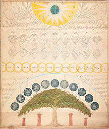 I received a draft of a beautiful Tree pencil'd on large sheet of plain white paper bearing ripe fruit. I saw it plainly, it looked very singular and curious to me. I have since learned that this Tree grows in the Spirit Land. Afterwards the Spirit showed me plainly the branches, leaves and fruit, painted or drawn upon paper. The leaves were check'd or cross'd and the same colours you see here. I entreated Mother Ann to tell me the name of this tree which she did on Oct. 1st 4th hour P.M. by moving the hand of a medium to write twice over Your Tree is the Tree of Life.[17]