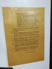 The Hỏa Lò was one site used by the North Vietnamese Army to house, torture and interrogate captured servicemen, mostly American pilots shot down during bombing raids.[16] Although North Vietnam was a signatory of the Third Geneva Convention of 1949,[16] which demanded "decent and humane treatment" of prisoners of war, severe torture methods were employed, such as rope bindings, irons, beatings, and prolonged solitary confinement.[9][16][17] When prisoners of war began to be released from this and other North Vietnamese prisons during the Johnson administration, their testimonies revealed widespread and systematic abuse of prisoners of war.[14] In 1968, Walter Heynowski and Gerhard Scheumann from East Germany filmed in the prison the 4-chapter series Piloten im Pyjama with interviews with American pilots in the prison, that they claimed were unscripted. H&S asked them about the contradictions in their self image and their war behavior and between the Code of the United States Fighting Force and their behavior during and after capture.[18]