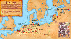 ![]() Northern Europe in the 1400s, showing the extent of the Hanseatic League | |