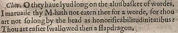 - Honorificabilitudinitatibus is a hapax legomenon of Shakespeare's works.
