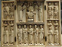 Of this "Romanos group" the Harbaville Triptych is considered "by far the finest, for it shows an elegance and delicacy which are absent in the others. All are in the polished, elegant style typical of the Court school."[2] Other groups of ivories have also been identified, presumably representing the output of different workshops, perhaps also employed by the Court, but generally of lower quality, or at least refinement.[3] Since much greater numbers of ivories survive than panel paintings from the period, they are very important for the history of Macedonian art.