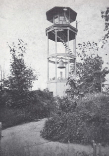 The Mount Morris Park tower went into service in 1857 in response to Harlem residents’ demand. The towers gave volunteers a perch from which to watch for fires that were common in the wooden structures that then made up much of New York City, and the watchers then spread the word via bell ringing. Later, electric telegraphs were installed but the bell provided local alarms. When pull boxes and other technological advances rendered the fire watchtowers obsolete, the system was discontinued and the other towers eventually were destroyed. Harlem's, protected in the middle of a park, endured.