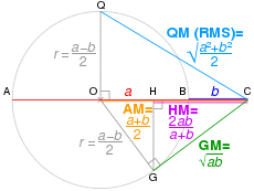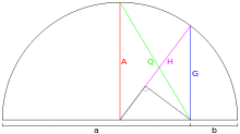 - ^ If AC = a and BC = b. OC = AM of a and b, and radius r = QO = OG.