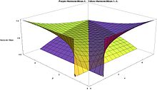 showing that for α = β the harmonic mean ranges from 0 for α = β = 1, to 1/2 for α = β → ∞.