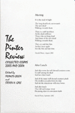The cover of The Pinter Review: Collected Essays 2003 and 2004 (published by The University of Tampa Press in 2004) features Pinter's poems "Meeting" (August 2002) and "After Lunch" (September 2002), which, along with some of his other recent poetry, are both posted on his official website.[16][17][18][19]