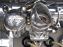 His involvement with the racing side of his carburetor business led first to repairing and then building race cars. In the 1910s, Miller was making $1 million per year through sales of his carburetors. In the early 1920s, he built his own 3.0 litre (183 in³) engine. Inspired by multiple engine designs including Duesenberg and Peugeot engines which had been serviced in his shop, it had 4 cylinders, dual overhead camshafts and 4 valves per cylinder. Tommy Milton supplied the financial backing to produce this engine but it was Jimmy Murphy who first won with it. It powered Jimmy Murphy's Duesenberg to victory in the 1922 Indianapolis 500.[1] Miller then progressed to making Miller single-seater race cars that used supercharged versions of his 2.0 and 1.5 liter (122 and 91 in³) engines. The engines took four more wins in the 500 up to 1929, twice (1926 and 1928) in Miller chassis,[2] and won the race another seven times between 1929 and 1938 (twice again, in 1930 and 1932, in Miller chassis).