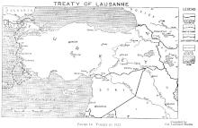 After World War I and the Turkish War of Independence, the Ottoman Empire was disbanded and the modern Republic of Turkey was created, and Alexandretta was not part of the new republic, it was put within the French mandate of Syria after a signed agreement between the Allies and Turkey, the Treaty of Sèvres, which was neither ratified by the Ottoman parliament nor by the Turkish National Movement in Ankara.[5] The subsequent Treaty of Lausanne also put Alexandretta within Syria. The document detailing the boundary between Turkey and Syria around 1920 and subsequent years is presented in a report by the Official Geographer of The Bureau of Intelligence and Research of the US Department of State.[6] A French-Turkish treaty of 20 October 1921 rendered the Sanjak of Alexandretta autonomous, and it remained so from 1921 to 1923. Out of 220,000 inhabitants in 1921, 87,000 were Turks.[7] Along with Turks the population of the Sanjak included: Arabs of various religious denominations (Sunni Muslims, Alawites, Greek Orthodox); Greek Catholics, Syriac-Maronites; Jews; Syriacs; Kurds; and Armenians. In 1923 Hatay was attached to the State of Aleppo, and in 1925 it was directly attached to the French mandate of Syria, still with special administrative status.
